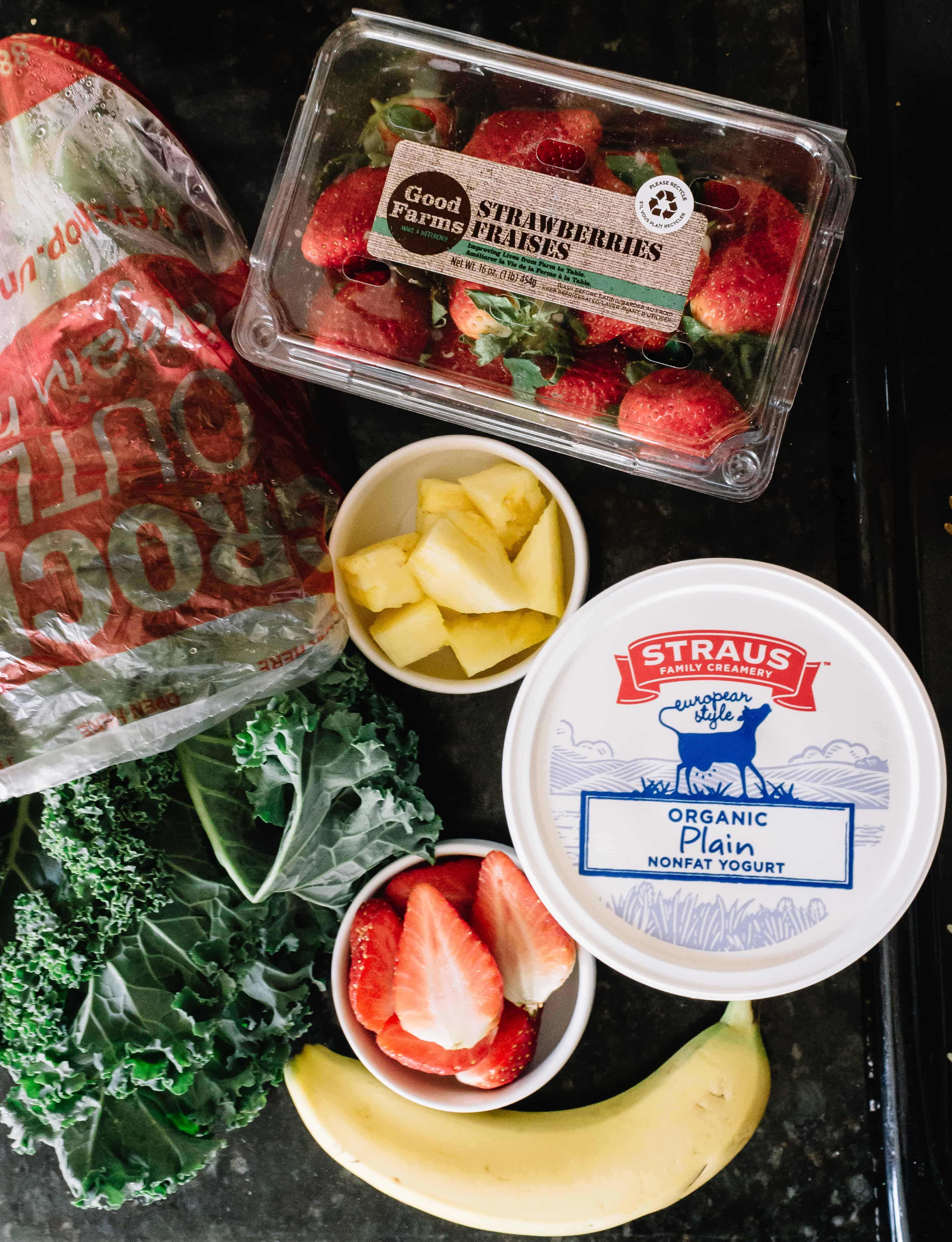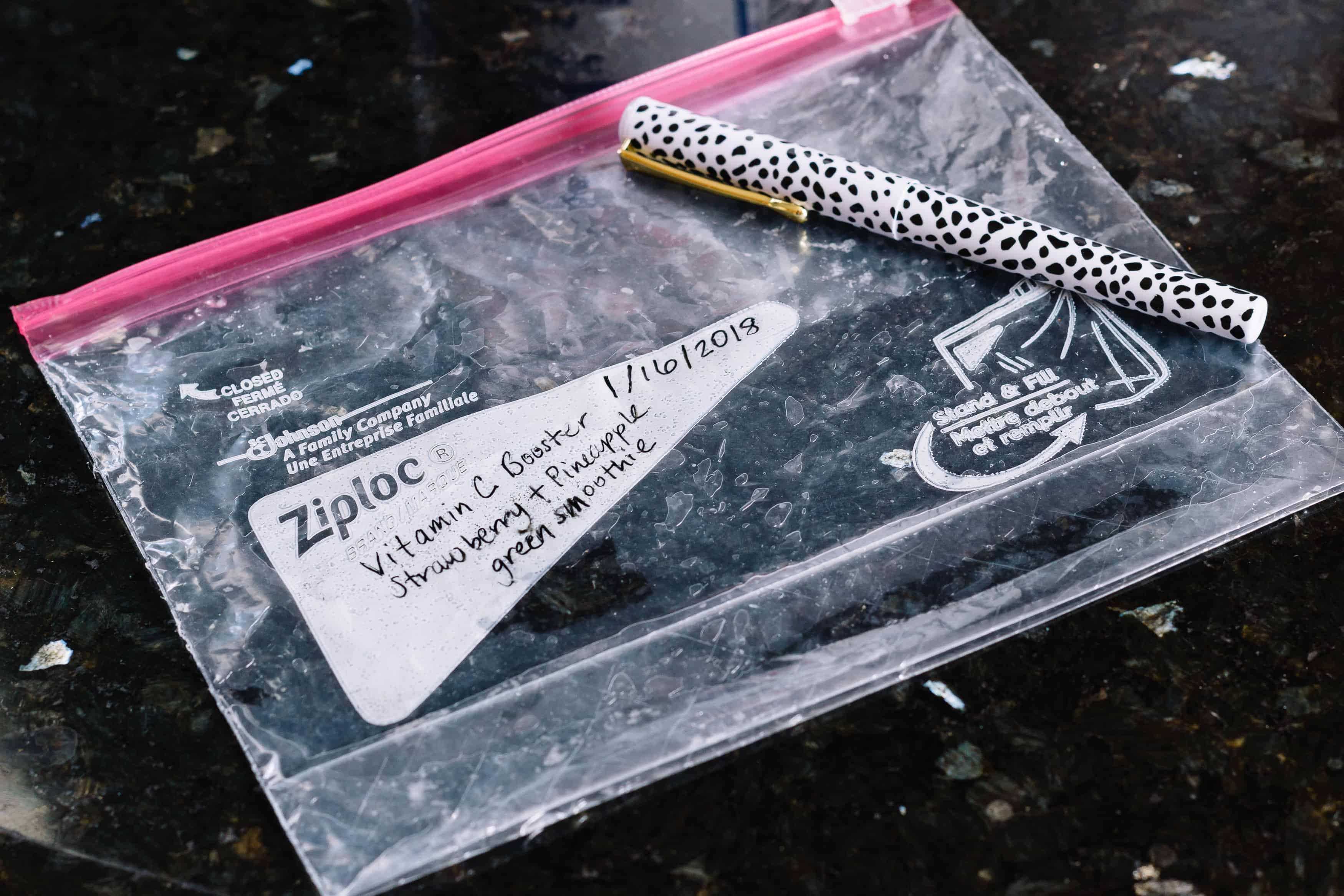 After my shopping trip, I headed home and decided to make a couple of smoothie packs using the products I purchased. One of my absolute favorite healthy winter smoothies is a strawberry and pineapple green smoothie. It’s my go-to smoothie when I need a Vitamin-C boost and it’s great for winter as it builds up your immunity. It’s good to make-ahead too just in case you get sick.